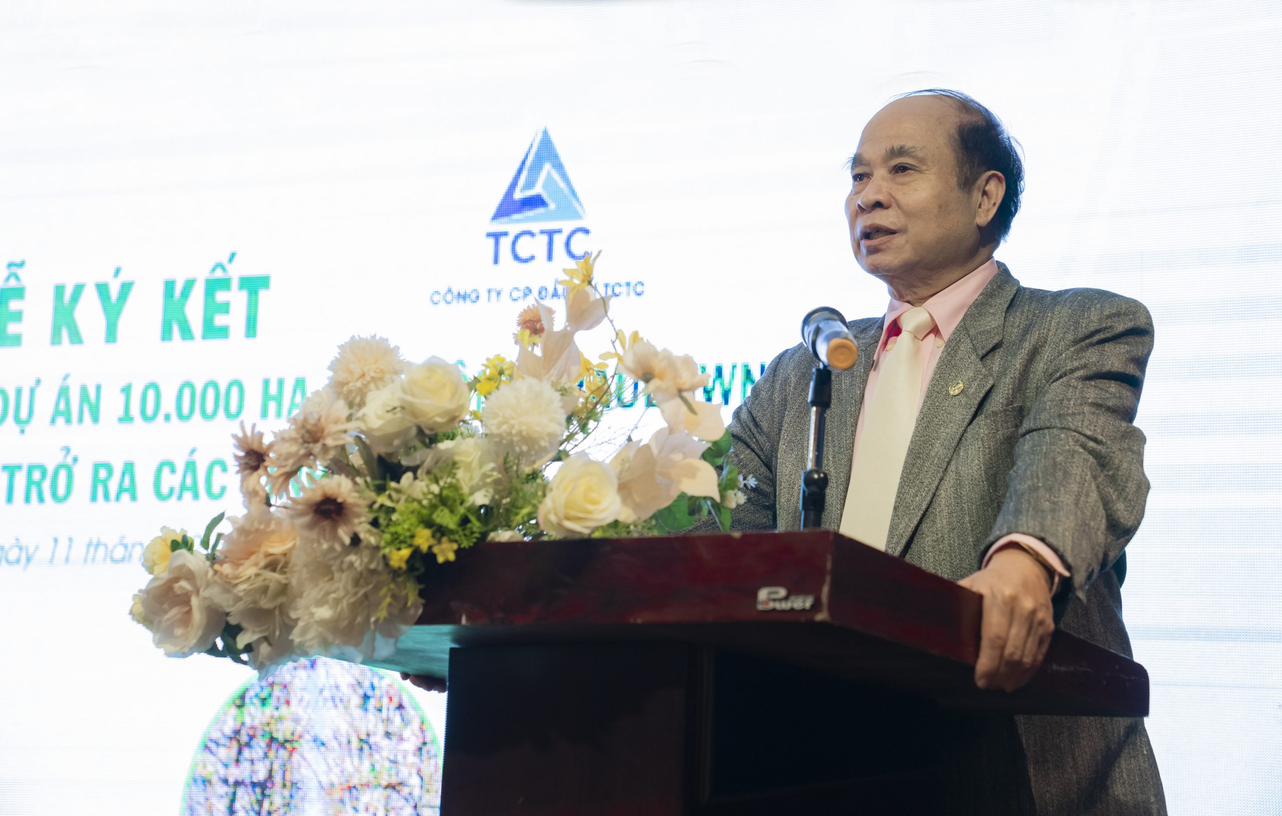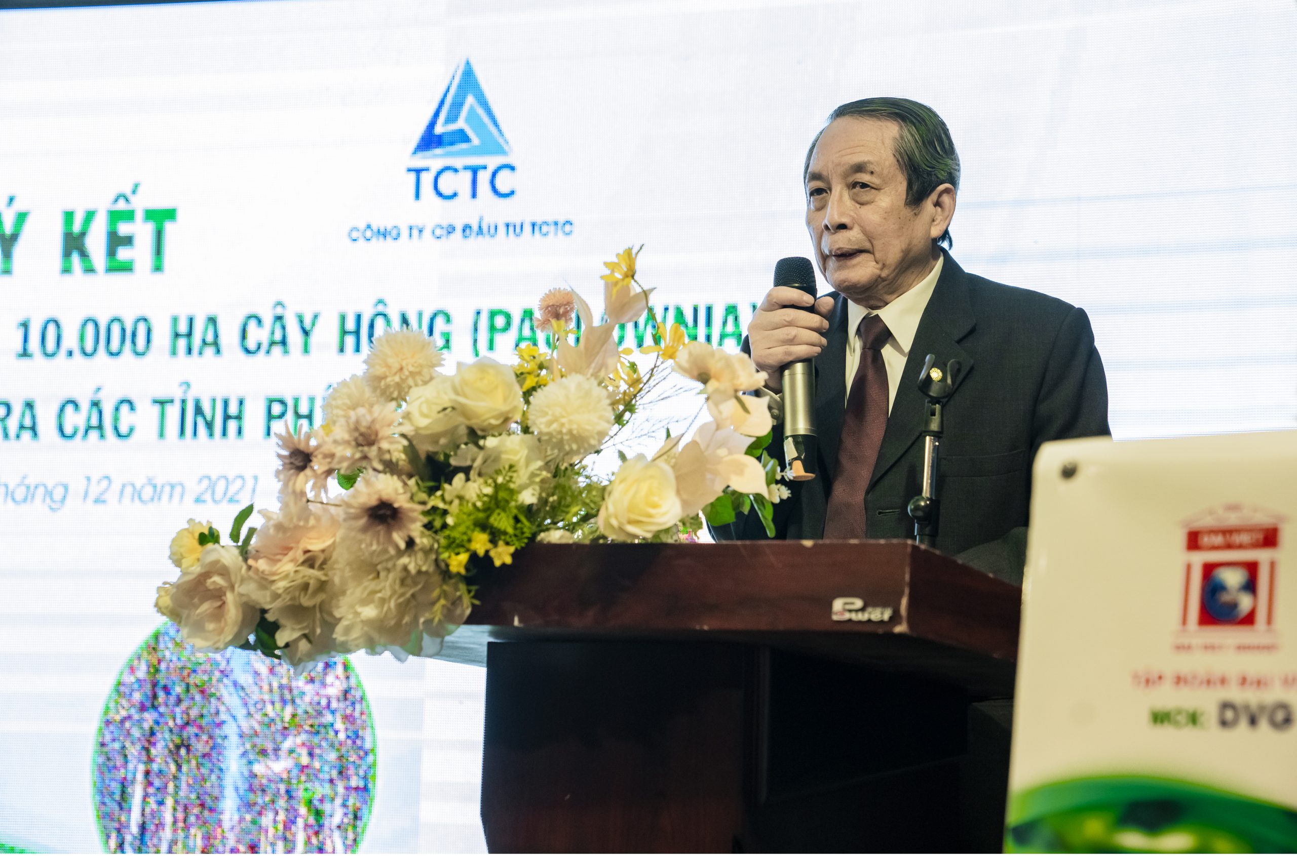 Tại buổi lễ long trọng này, đại diện cơ quan ban ngành Giáo sư, Viện sĩ Trần Đình Long – Chủ tịch Hội giống cây trông Việt Nam nhấn mạnh: “Dự án trồng cây Hông là dự án quy mô lớn. Cây Hông là cây rất giá trị, vừa mang lại lợi ích kinh tế, lợi ích môi trường vừa mang lại lợi ích xã hội. Tôi rất vui mừng và tin tưởng khi 2 công ty cùng với chính quyền địa phương hợp tác để phát triển dự án, chắc chắc dự án sẽ thành công khi được đầu tư bài bản từ giống, kỹ thuật… đến việc tiêu thụ sản phẩm. Chúng ta sẽ cùng nhau đón chờ thành quả của dự án trong 10 năm nữa”.